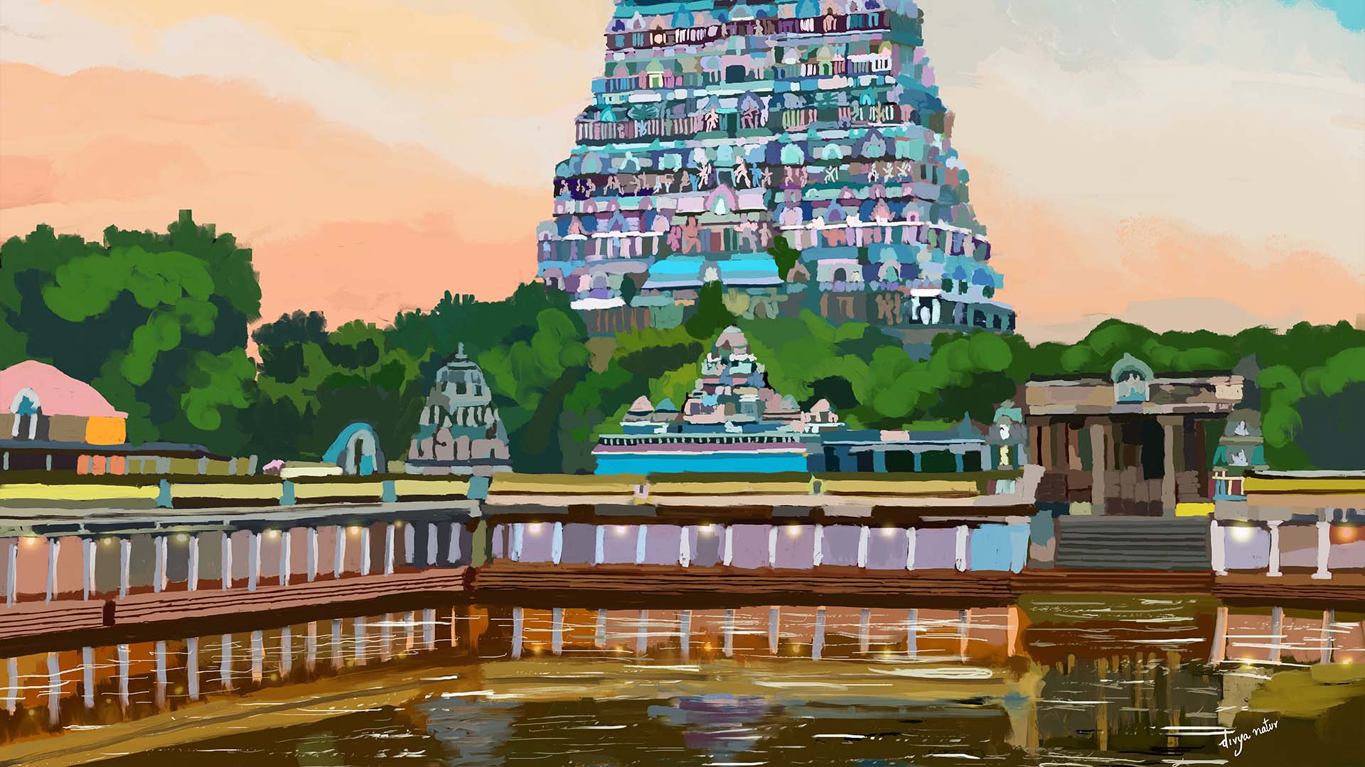 Tirupathi Temple Painting | Rainy Day Atmosphere